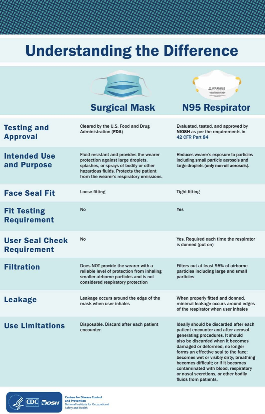 CDC & NIOSH Infographic: Understanding the Difference Between Surgical Masks vs. N95 Respirators